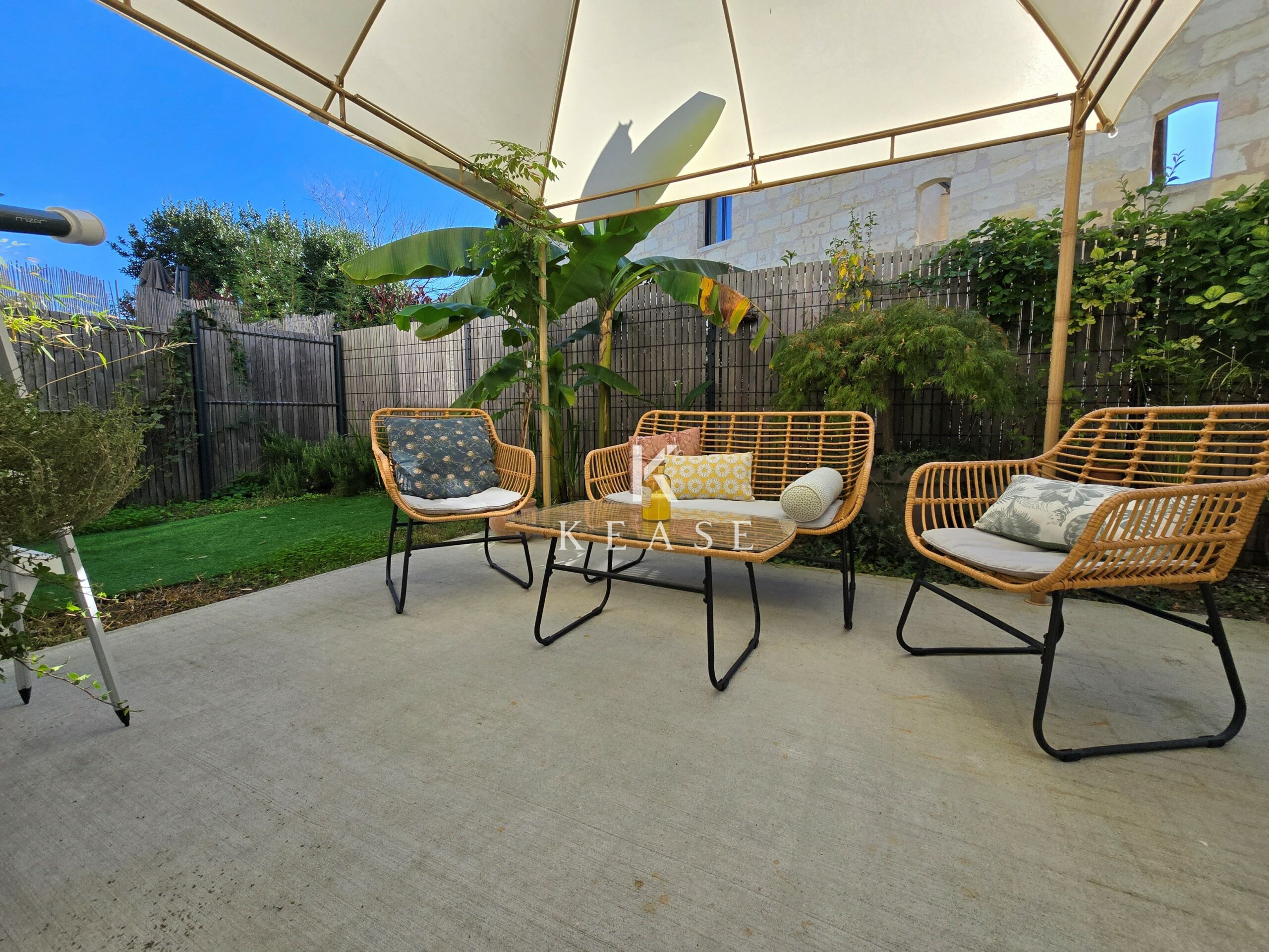 Un jardin arboré de 60m², avec terrasse, permet de profiter d’un extérieur ensoleillé et sans vis à vis.