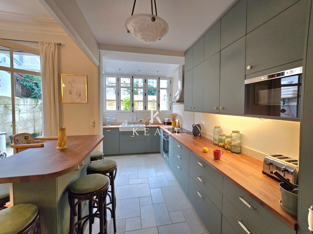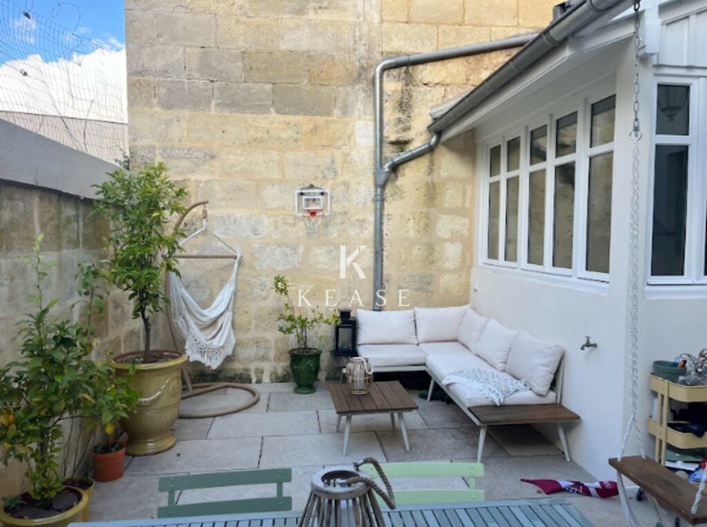 En exclusivité, élégante maison bordelaise en pierre de 155m², 4 chambres, entièrement rénovée et décorée avec goût et offrant une harmonie parfaite entre charme de l’ancien et confort contemporain.