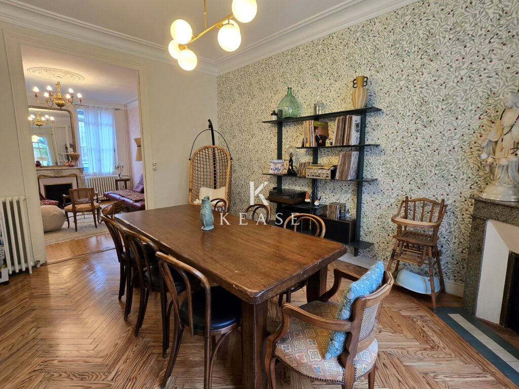 Dès l’entrée, vous serez séduits par ses prestations d’époque remarquablement préservées : moulures, cheminées, parquet massif, carreaux de ciment, belle hauteur sous plafond… Autant d’éléments qui confèrent à la maison une atmosphère chaleureuse, authentique et raffinée.
