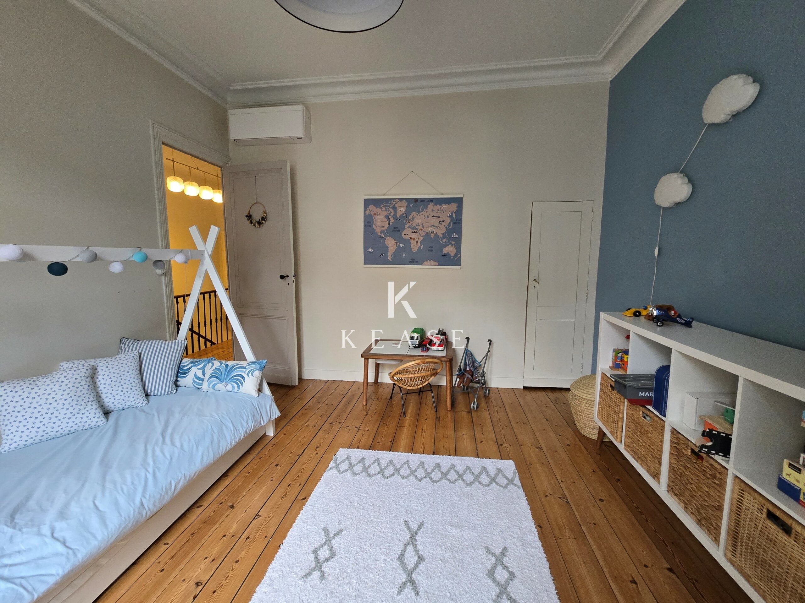 Au second étage, vous trouverez également deux chambres, une salle d’eau et un palier pouvant faire office d’espace jeux ou de bureau supplémentaire.